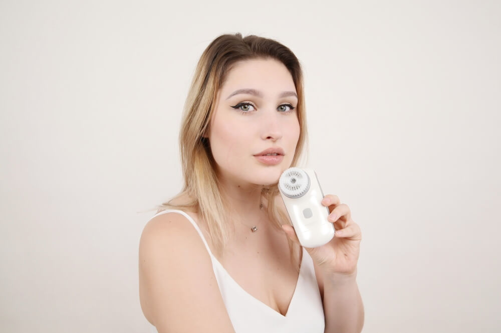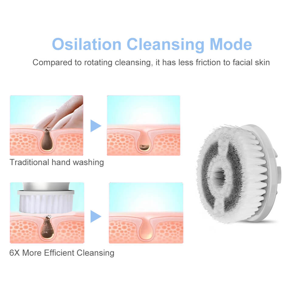Gentle sonic vibration with fine bristles removes impurities, excess oil, and makeup for clearer, healthier skin.
