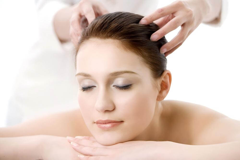 Gently massage from the hairline to the crown, then along the sides of the head to stimulate blood circulation.