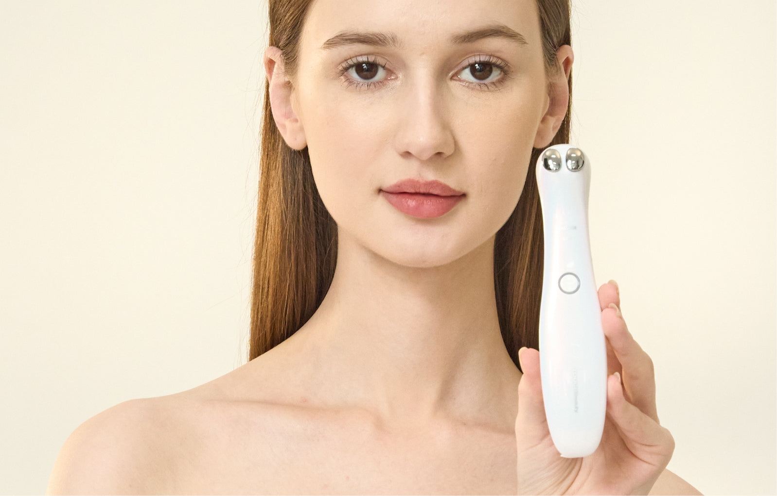 The AURA Eye Beauty Device is easy to use. Apply your favorite eye cream or serum to the eye contour. Turn on the device and select the mode and intensity level you want to use. Gently and slowly glide the massage head from the inner to the outer corner of the eye. Repeat for 1.5 minutes on each eye. Make sure to turn off the device after use.